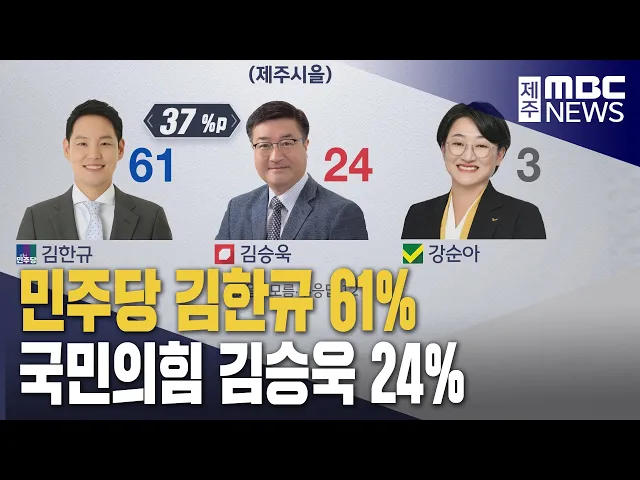 ◀ 앵 커 ▶이번에는 제주시을 선거구입니다.현역 국회의원인더불어민주당 김한규 의원과선거에 처음 출마하는 정치 신인들이 경쟁을 펼치는데요. 김한규 의원이후보 지지도와 당선 가능성에서다른 후보들을 크게 앞서는 것으로 나타났습니다.박주연 기자가 보도합니다.◀ 리포트 ▶제주시을 지역구에 출마가 예상되는 후보 가...