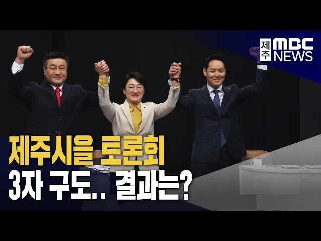 (언론4사 초청) 제주시을 국회의원선거 후보자 토론회(2024.03.12 / 제주MBC) 사회자 : 윤상범 아나운서 #. 출연 - 국민의힘 김승욱 후보 - 녹색정의당 강순아 후보 - 더불어민주당 김한규 후보 #. 연출 : 양경석 #. 구성 : 최연주 -유튜브 '제주MBC' -페이스북 '제주MBC' -카카오톡 '제주MBC' -홈페이지 www.jejumbc.com ...