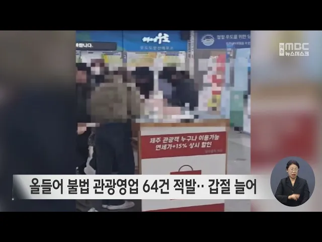 뉴스데스크 뉴스데스크뉴스투데이기획뉴스유튜브 뉴스페이스북 뉴스 prev 2025.12.3 - 수요일 next 준모항 크루즈 체험단 "다시 타고 싶다 95%" 제주 준모항 크루즈 체험 만족도가높게 나타났습니다.제주도가 지난달 4박 5일 일정으로 일본과 중국을 다녀온 체험단 24명을 대상으로 설문조사를 실시한 결과,재이용 의사는 95.8%, 주변 추천 의향은 10... 홍수현 제주 농업 온실가스 대부분 메탄과 아산화질소 제주 농업 분야에서 나오는 온실가스 대부분이 메탄과 아산화질소인 것으로 나타났습니다.제주도 농업기술원이 1990년부터 재작년까지 34년 동안 농업 부문 온실가스 배출량을 분석한 결과, 메탄이 58%, ... 홍수현 올들어 불법 관광영업 64건 적발‥ 갑절 늘어 불법 관광영업 적발 건수가 올들어 크게 늘었습니다.제주도 자치경찰단은지난 3월부터 단속반을 운영해불법 유상 운송 43건과,무자격가이드 17건 등모두 64건의 불법 관광영업을 적발했습니다.지난해 같은... 박주연 2026 제주 전국체전 준비‥단계별 추진 내년 제주에서 열리는 전국체육대회와 전국장애인체육대회 준비가 본격적으로 이뤄집니다.171명 규모의 조직위원회가 지난 6월 출범한 데 이어, 이달에는 도민 591명으로 구성된 범도민 지원위원회도 출범... 홍수현 12.3 비상계엄 1년‥시민들 다시 거리로 ◀ 앵 커 ▶12.3 비상계엄 1년을 맞아 제주에서도 대규모 집회가 열렸습니다.쌀쌀한 겨울 날씨에도수백 명의 시민들이 모여내란 세력의 완전한청산을 촉구했습니다.김항섭 기자입니다.◀ 리포트 ▶매서운 바람... 김항섭 "민주주의 회복해야" 여전한 정치적 갈등 ◀ 앵 커 ▶12.3 비상계엄 1년을 맞아제주지역 정당과 단체들도잇따라 입장을 발표했습니다.더불어민주당과 시민단체들은 민주주의 회복과 내란 청산을 촉구했지만계엄을 둘러싼 정치적 갈등은 1년이 지난 ... 조인호 고 현승준 교사 교육청 진상조사 결과 내일 발표 고 현승준 교사 사망사건에 대한교육청 진상조사 결과가 내일(4일) 발표됩니다.제주도교육청 진상조사단은내일 오후 결과 브리핑을 통해숨진 교사의 사망 경위와 원인 등5개월 동안의 조사 결과를 공식 발... 김찬년 공영주차장 특혜 의혹·공부방 예산 차별 도마 서귀포시 지하 공영주차장 조성사업의 특혜 의혹과 청소년 공부방 예산 삭감이 도의회 예결위 심사에서 도마에 올랐습니다.도의회 예산결산특별위원회 예산안 심사에서 김기환 의원은 공법선정위원회 모집... 홍수현 올해 제주공항 국제선 여객 첫 300만명 돌파할 듯 올해 제주공항 국제선 여객이 사상 처음으로 300만 명을 돌파할 것으로 보입니다.한국공항공사에 따르면 올들어 지금까지 제주공항 국제선 여객은 280만 명으로 역대 최고치를 기록한 2016년의 274만 명을... 조인호 한라산 대설주의보‥체감온도 영하권 ◀ 앵 커 ▶오늘 갑자기 뚝떨어진 기온에 많이들 추우셨을 텐데요.한라산에는 대설주의보가 내려져탐방로 출입이 모두 막히고, 산간도로의 차량 운행도 통제됐습니다.추위는 주말부터 차츰 누그러질 전망입... 박현주 제주 65세 이상 여성 기대 여명 25년‥전국 1위 제주지역 65살 이상 여성의 기대여명이전국에서 가장 높았습니다.보건복지부가 최근 발간한사회보장통계집에 따르면2023년 기준 제주 65살 여성의 기대 여명은 25.2년으로 전국 평균 23.4년을 크게 웃돌았... 박주연 토평공단 야적장 화재 40시간만에 완진 서귀포 토평공업단지 안 야적장에서 난 불이40여 시간 만에 완전히 진화됐습니다.제주도소방안전본부는그제(1일) 저녁 7시 10분쯤서귀포시 토평동의 한 폐목재 가공업체에서 난 불이 화재 발생 사흘 째인 ... 김항섭 카지노 금품 훔친 미등록 외국인 구속 카지노에서 금품을 훔친미등록 외국인이 구속됐습니다.제주서부경찰서는지난달 19일 밤 10시 40분쯤제주시내 한 호텔 카지노에서다른 중국인이 자리를 비운 사이천500만 원어치의 금품이 들어 있는 가방을... 김항섭