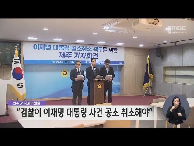 뉴스데스크 뉴스데스크뉴스투데이기획뉴스유튜브 뉴스페이스북 뉴스 prev 2026.2.2 - 월요일 next 문대림·위성곤 사실상 출마 확정‥막 오른 지방선거 ◀ 앵 커 ▶6.3 지방선거 예비후보 등록이 하루 앞으로 다가온 가운데 집권여당인 더불어민주당 현역 국회의원들이 사실상 출마를 선언했습니다.도의원 예비후보에도 70명 넘게 신청을 해 치열한 예선 경쟁... 권혁태 국민의힘 제주도당 2030정의실천특위 출범 국민의힘 제주도당 2030정의실천특별위원회가 출범했습니다.2030정의실천특위는 제주 현안과 정책 등을 주제로 다양한 토론을 진행하고,차세대 정치 인재 양성과 영입 등을 추진하게 됩니다.고기철 도당위... 홍수현 송문석 전 교장, 제주도교육감 선거 출마선언 송문석 전 서귀중앙여중 교장이제주도교육감 선거 출마를 선언했습니다.송문석 전 교장은제주도의회에서 기자회견을 갖고제주 교육은 침몰 위기에 놓여 전환의 문턱에 서 있다며이념이 아닌 헌법으로 제주... 조인호 도내 언론5사 지방선거 여론조사 결과 내일 아침 발표 제주MBC 등 도내 언론 5사가 함께 실시한 지방선거 여론조사 결과가내일(3일) 아침 MBC뉴스투데이 제주 시간에 발표됩니다.이번 여론조사에는 도지사와 교육감 후보 선호도를 비롯해 더불어민주당과 국민... 송원일 제주 택배노동자 건강검진 지원, 택배사 반대로 난항 ◀ 앵 커 ▶제주에서 쿠팡 새벽배송을 하다 교통사고로 숨진 고 오승용 씨 죽음이 산업재해로 인정된 이후 택배노동자들의 안전과 건강권 보호를 촉구하는 목소리가 더 커지고 있는데요.노동자들의 건강검진... 홍수현 탐라국 입춘굿 시작‥풍요·무사안녕 기원 ◀ 앵 커 ▶절기상 봄에 접어든다는 입춘을 맞아제주 전통 축제인 탐라국 입춘굿이 펼쳐졌습니다.제주의 만 8천 신에게올 한 해의 풍요와 무사안녕을 기원했습니다.박주연 기자가 보도합니다.◀ 리포트 ▶세찬... 박주연 "이재명 대통령 사건 공소 취소해야" 제주지역 국회의원 등 민주당 의원들이 이재명 대통령에 대한 검찰의 공소 취소를 촉구햇습니다.문대림과 위성곤, 이건태 민주당 국회의원은 제주도의회에서 기자회견을 열고윤석열 전 대통령의 정치 보복... 김찬년 헌재 "주말 변호인 접견 불허는 위헌" 주말을 이유로 변호인 접견을 허가 하지 않는 것은 위헌이라는 결정이 내려졌습니다.헌법재판소는 박현우 전 진보당 제주도당 위원장이 제기한 변호인 접견 불허 위헌 확인 헌법소원을 재판관 9명 전원 일... 조인호 분산에너지 특화지역 지정 후 제도개선 본격 제주도가분산에너지 특화지역 지정 이후제도 개선에 본격적으로 나섭니다.이에 따라 태양광발전기가 설치된 주택 천500여 곳을 대상으로 전기 히트펌프를 보급하고 주택용 누진요금이 적용되지 않는 전용 ... 박주연 연말연시 이웃돕기 모금액 지난해보다 줄어 연말연시 이웃돕기 성금 모금액이지난해보다 줄었습니다.제주도사회복지공동모금회가 진행한 희망2026 나눔캠페인 모금액은 44억 6천 500만원으로 목표액을 초과했지만 지난해 보다 6.4% 감소했습니다.모... 조인호 제주 교육청, 폐교 재산 관리 활용 기본계획 수립 제주도교육청이 폐교 재산 관리와활용을 위한 기본계획을 세웠습니다.교육청은폐교재산을 교육적 사용을 최우선으로 하고 자체 활용계획이 없는 경우 공공목적을 위해 빌려주며교육용과 사회복지, 문화와 ... 조인호 만다린 무관세 수입…검역 강화 대응 미국산 만다린 무관세 수입에 따라검영 대응이 강화됩니다.오영훈 제주도지사는 도정 소통 공감의 날 회의에서만다린 수입과 관련해 제주 감귤이 경쟁력을 잃을 가능성이 없다면서도, 병해충 유입과 잔류... 홍수현 오름에서 등반객 잇따라 다쳐 오름 등반객 사고가 잇따라 2명이 다쳤습니다.어제(1일) 오후 2시쯤 제주시 애월읍 광령리 붉은오름에서 50대 남성이 돌부리에 걸려 넘어진 뒤 골절상을 입어119구조대가 병원으로 옮겼습니다.오후 5시쯤... 조인호