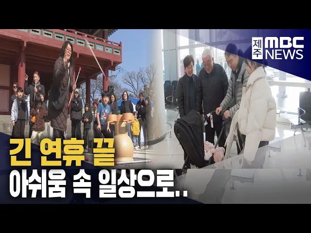 뉴스데스크 뉴스데스크뉴스투데이기획뉴스유튜브 뉴스페이스북 뉴스 prev 2026.2.18 - 수요일 next 연휴 끝, 아쉬움 속 일상으로 ◀ 앵 커 ▶닷새동안의 설 연휴가 마무리됐습니다.모처럼 고향을 찾았던 사람들과집으로 돌아가는 관광객들이 몰리면서 공항은하루종일 북적였고 연휴 마지막을 즐기려는 사람들은 관광지로 향했습니다.권혁... 권혁태 서귀포 도시우회도로 개설사업 공론화 추진 지역내 찬반 갈등이 일고 있는서귀포시 우회도로개설 사업에 대한시민논의 절차가 시작됩니다.제주도는 전문가 5명으로 구성된 공론화 추진단을 구성해 지역 주민과 이해당사자들의 의견을 청취했습니다.... 권혁태 제주SK FC, 3월1일 홈 개막전 프로축구 K리그 제주SK FC가다음달 1일 광주FC를 상대로 이번 시즌 홈 개막전을 갖습니다.제주SK FC는 이번 시즌 국가대표팀 수석코치를 지낸 포르투갈 출신 세르지우 코스타 감독을 염입해 리그 상위권 ... 권혁태 소외계층과 청년층에 문화예술이용권 확대지원 형편이 어려운 소외계층과 청년층을 위한문화예술이용권 지원이 확대됩니다.제주도는 올해 경제적 소외계층에게지난해보다 만원 늘어난 연간 15만원의 통합문화이용권을 지급합니다.또, 2천6년과 2천7년 ... 권혁태 창업 두드림 특별보증 확대 시행 제주도가 창업 초기 자금난 해소를 위해 330억 원 규모의 '창업 두드림 특별보증'을 시행합니다.보증액은 지난해보다 30억 원 늘어난 규모로,창업 1년 이내 기업에 최대 5천만 원까지 저금리 신용보증을 ... 홍수현