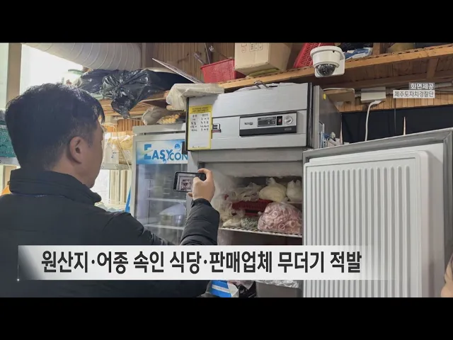 뉴스데스크 뉴스데스크뉴스투데이기획뉴스유튜브 뉴스페이스북 뉴스 prev 2026.2.28 - 토요일 next 제주 4·3 학살터에 치유 평화 위한 성당 지어져 제주 4.3 당시주민들이 학살됐던 장소에치유와 평화를 기념하는새 성당이 들어섭니다.천주교 제주교구 중문성당은오늘(28일) 중문성당에서'치유와 평화의 기념 성당새 정전 기공식'을 열고 공사를 시작했... 김항섭 음식점에 렌터카 차량 돌진사고 어제(27일) 오후 4시 반쯤제주시 이도 2동에서렌터카 승용차가 후진을 하다음식점으로 돌진했습니다.이 사고로 음식점 창문이 깨지면서50대 여성 손님이 유리창 파편에어깨와 손 등을 다쳐 병원으로 옮겨... 조인호 승용차 오토바이 부딪혀‥1명 경상 오늘(28일) 오후 3시 반쯤제주시 이도2동광양사거리에서승용차와 오토바이가부딪혔습니다.이 사고로 오토바이 운전자인30대 남성이 다쳐인근 병원으로 이송돼치료를 받았습니다.경찰은 승용차 운전자 등을... 김항섭 고령운전자 교통사고 3년 만에 20% 늘어 제주지역에서 고령운전자 교통사고가급증하고 있습니다.제주경찰청에 따르면65살 이상 고령 운전자 교통사고는2021년 635건에서 2024년에는 764건으로 3년 만에 20% 이상 늘었습니다.2024년에는 고령 운전... 조인호 원산지·어종 속인 식당·판매업체 무더기 적발 원산지를 속인 업체들이 자치경찰에 무더기로 적발됐습니다.제주도자치경찰단은 설명절 전후로 특별 단속을 벌여 어종이나 원산지를 속인 식당과 판매업체 15곳을 적발해 11건에 대해 검찰에 넘겼습니다.... 김찬년 우도에서 전동 킥보드·미등록 카트 운행 금지 앞으로 우도에서 전동 킥보드로 불리는 개인형 이동장치와 미등록 전동카트 운행이 금지됩니다.제주도는 다음 달 19일부터 우도면 내 일부 자동차 운행제한 연장 명령을 시행하기로 하고,최고속도 시속 25... 송원일 제주 준공 후 미분양 주택 또 역대 최고 도내 준공 후 미분양 주택 믈량이 또 역대 최고를 기록했습니다.국토교통부 주택통계에 따르면 지난달 말 기준 제주의 준공 후 미분양 주택은 2천102가구로 전달 2천30가구보다 3.5% 늘어나 역대 최고를 ... 송원일