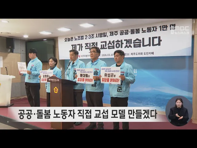 뉴스데스크 뉴스데스크뉴스투데이기획뉴스유튜브 뉴스페이스북 뉴스 prev 2026.3.10 - 화요일 next 제주공항 로컬라이저 "안전성 확보되지 않아" ◀ 앵 커 ▶무안공항에서 발생한제주항공 여객기 참사 당시둔덕으로 만든 로컬라이저가 참사 피해를 키웠는데요.제주공항에 설치된 철재 로컬라이저도 규정을 어기고 부적절하게 설치돼승객 안전을 위협한다... 김항섭 제주도 최저가·최고가 주유소 하루 2차례 공개 제주도내 최저가 주유소와 최고가 주유소 명단이 하루 두 차례 공개됩니다.제주도는 중동 정세 불안으로 기름값이 치솟자오전 9시와 오후 4시, 하루 두 차례 유종별 최저가 주요소와 최고가 주유소 명단을... 박주연 택배 추가배송비 지원사업 첫날 3만 5천건 몰려 택배 추가배송비 지원사업 신청이 시작된 가운데 첫날 작년보다 3배 넘게 신청 몰렸습니다.제주도에 따르면 첫날 신청 건수는 3만 5천여 건으로 지난해 하루 평균보다 3.6배 급증했습니다.제주도는 올해 ... 홍수현 1년 빌리면 365배‥서민 노린 불법 사금융 ◀ 앵 커 ▶사회 초년생이나 서민들은 금융기관에서 돈을 빌리고 싶어도신용이나 담보가 부족해빌리기 어려운 경우가 많은데요.이런 사람들을 노린불법 사금융 업체가 적발됐는데1년 이자가 무려 3만 6천 50... 조인호 민주당·국민의힘 도의원 후보자 모집 6.3 지방선거를 앞두고 각 정당마다 도의원 후보자 모집에 나서고 있습니다.더불어민주당 제주도당은 광역의원 후보자 공모 일정을 의결하고, 제주시 조천과 한림읍을 제외한 20개 선거구와 서귀포시 대륜... 홍수현 공공·돌봄 노동자 직접 교섭 모델 만들겠다 진보당 김명호 제주도지사 후보가 노조법 2·3조 개정안 시행일을 맞아 제주 공공·돌봄 노동자들이 진짜 사용자와 교섭할 권리를 보장해야 한다고 촉구했습니다.김명호 후보는 제주도청과 공기업, 민간위탁... 홍수현 풍력발전 이익공유제‥기부금 '위법' 논란 ◀ 앵 커 ▶제주도가 풍력발전 개발 이익을 주민과 나누는 이익공유제를 시행하고 있는데요.이 제도의 핵심 재원을 모으는 방식이 법 위반 가능성이 있다는 연구 결과가 나왔는데,제주도가 뒤늦게 대응에 나... 홍수현 신혼·출산부부 '월 3만원' 임대주택 지원 확대 신혼과 출산부부를 위한 '3만 원 주택'의 지원 대상이 올해 확대됩니다.제주도는 올해 지원 대상의 소득 기준을 가구당 월 평균 소득 100% 이하에서 130% 이하로 완화하고, 지난해 2억천700만 원이었던 지... 박주연 세계기상기구 태풍위원회 총회 제주에서 열려 세계기상기구와 유엔 산하기구인태풍위원회 총회가 제주에서 개막했습니다.오는 13일까지 메종글래드 제주호텔에서 열리는 총회에는 북서태평양 지역 11개 나라의 기상청장 등 전문가 150여 명이 참석해기... 조인호 제2공항 찬성단체 "제2공항 추진 공약해야" 제주 제2공항 범도민 추진위원회는제주도청 앞에서 기자회견을 갖고도지사 후보들은 제2공항의 조속한 추진을 공약하라고 요구했습니다.이들은 제2공항은 도민의 숙원사업이며문제와 의혹은 충분히 해소됐... 조인호 도지정 문화유산 주변 건축 규제 완화 도지정 문화유산 주변에 대한 건축 규제가 10년 만에 완화됩니다.제주도 세계유산본부는 문화유산 주변 역사문화환경보존지역의 건축행위 허용기준을 조정해 오는 13일 도보에 고시합니다.이번 조정으로 ... 홍수현 감귤나무 가지치기 손가락 부상 잇따라 감귤나무 가지치기를 하다부상을 입는 사고가 잇따르고 있습니다.제주도소방안전본부에 따르면어제(9일) 오전 8시 50분쯤제주시 조천읍의 한 과수원에서70대 여성이 가지치기 작업을 하다 전동 가위에 손... 김항섭 공공기관 이전 우선 검토…제주특별법 개정안 발의 더불어민주당 김한규 국회의원이공공기관 이전 시 제주를 우선 검토하도록 하는제주특별법 개정안을 대표발의했습니다.개정안에는 수도권 공공기관이 지방에 이전할 때 제주도를 우선 고려하도록 하는 내... 홍수현