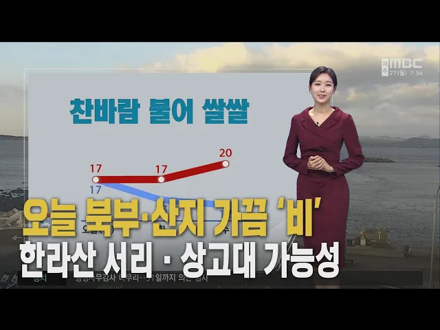 뉴스투데이 뉴스데스크뉴스투데이기획뉴스유튜브 뉴스페이스북 뉴스 prev 2025.10.27 - 월요일 next 찬바람 쌩쌩‥모레까지 추워요! 오늘 옷차림 따뜻하게 해주셔야겠습니다.북쪽의 찬공기가 들어오면서 모레까지는 쌀쌀하겠는데요.오늘 어제보다 3~5도 가량 떨어졌습니다. 찬바람도 강하게 불어서 체감온도는 더 낮아지겠는데요. 모레까... 김희서 대만 관광객 30% 증가‥직항 노선 영향 항공 노선이 늘면서 제주를 찾는 대만 관광객이 크게 늘었습니다.제주도에 따르면지난달까지 제주를 방문한 대만 관광객은16만 천여 명으로지난해 같은 기간보다 30% 가까이 증가해 외국인 관광객 중 중국... 이따끔 연간 80억 적자 제주항공우주박물관 '진퇴양난' 해마다 적자가 쌓이고 있는 제주항공우주박물관 운영 문제가 국정감사에서도 도마에 올랐습니다.더불어민주당 송기헌 의원은국회 국토교통위원회 국정감사에서 한 번도 수익을 거둔적이 없는 것 같다며처... 김찬년