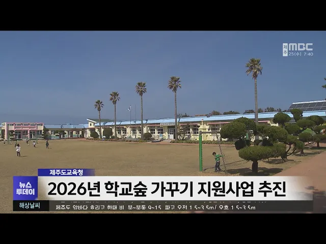 뉴스투데이 뉴스데스크뉴스투데이기획뉴스유튜브 뉴스페이스북 뉴스 prev 2026.2.25 - 수요일 next 내륙에 짙은 안개, 제주남쪽먼바다 매우 높은 물결 주의 오늘 오전까지는 경기남부와강원 산지, 충청권 등내륙 곳곳에 가시거리 200m 미만의짙은 안개가 끼는 곳이 있겠습니다.안개로 인해 제주 공항을 연결하는내륙의 공항에서는 항공기 운항에차질이 있을 수 ... 송유진 빗길에 승용차 2대 충돌‥5명 다쳐 어제(24일) 오후 1시 20분쯤서귀포시 안덕면 동광육거리 부근 도로에서승용차 2대가 충돌해1대가 길 옆 도랑으로 전복되는 사고가 발생했습니다.이 사고로 60대 여성이 중상을 입는 등양쪽 차량 탑승자 5... 조인호 5.16도로 명칭 변경 서귀포 2차 토론회 5.16도로 명칭 변경을 논의하는두 번째 토론회가 내일(26일), 서귀포 예술의전당 소극장에서 열립니다.이번 토론회는지난 1월 30일 제주시 농어업인회관에서 연 1차 토론회에 이어5.16도로의 역사적 배경... 김찬년 CCTV 확충·AI 관제체제 구축에 22억 원 투자 올해 제주지역에 CCTV 추가 설치와인공지능 기반 관제체계 구축에 22억 원이 투자됩니다.제주도는 범죄예방과 재난대응, 어린이 보호를 위해 33곳에 방범용 CCTV와 안심비상벨을 설치합니다.또 인공지능 ... 권혁태 교육청, 2026년 학교숲 가꾸기 지원사업 추진 제주도교육청이2026년 학교숲 가꾸기지원사업을 추진합니다.이번 사업은학교 내 활용도가 낮은 공간을지역사회와 함께 이용할 수 있는숲으로 조성하는 사업으로공모를 통해 초·중·고·특수학교 가운데5곳을... 김항섭