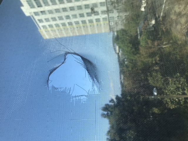 (사진은 새가 통과해서 찢어진 방충망과.. 새의 깃털만 흔적으로 남아 올려봐요~^^)