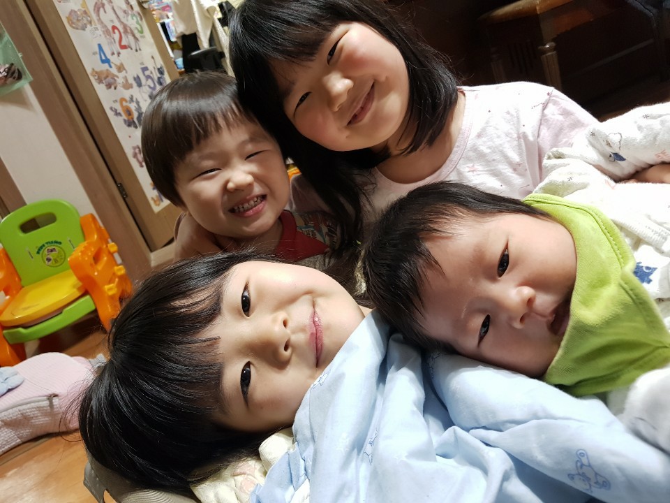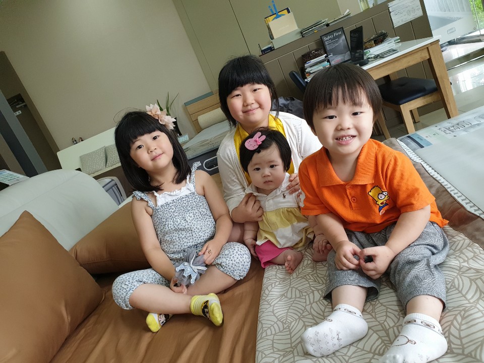 사진에서처럼 큰딸(현진), 둘째딸(현아), 아들(현성), 막내딸(현서)가 퇴근 후 매일 저녁 9시까지 1층을 놀이방으로 만들지요.