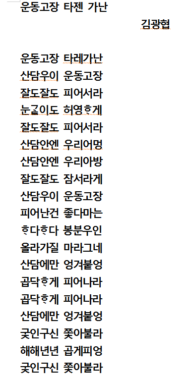 김광협 시인의 시 ‘운동고장 타젠 가난’이군요.