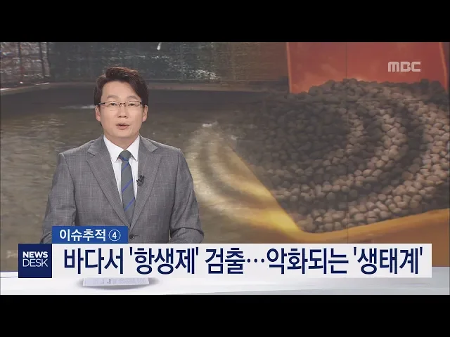 ◀ANC▶ 양식장에서는 사료 뿐만이 아니라넙치들의 감염병을 막기위해항생제를 같이 사용하고 있는데요. 그동안은 이 항생제가 바다로 배출되자마자 분해돼해양 생태계에 미치는 영향이 크지 않을 것으로 봤었습니다. 그런데 막상 항생제 조사를 해보니배출구 주변 뿐만 아니라 앞 바다에 광범위하게 잔류하는 것으로 확인...
