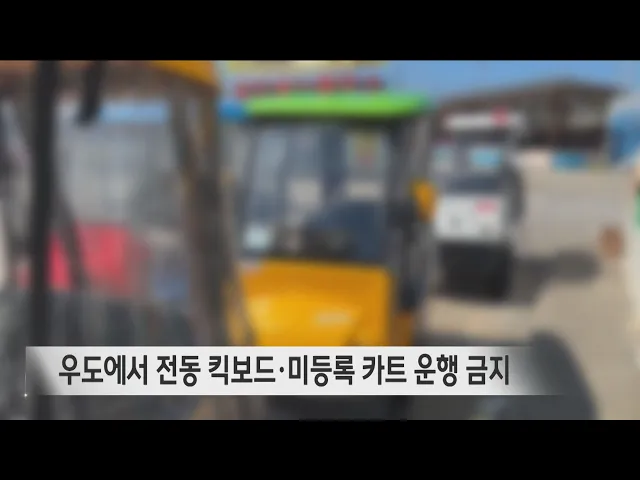 앞으로 우도에서 전동 킥보드로 불리는 개인형 이동장치와 미등록 전동카트 운행이 금지됩니다.제주도는 다음 달 19일부터 우도면 내 일부 자동차 운행제한 연장 명령을 시행하기로 하고,최고속도 시속 25㎞ 이하 대여용 이륜차와책임보험 미가입 차량, 개인형 이동장치의 운행을 금지합니다.이번 조치는 지난해 8월부터 일...