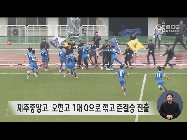 백호기 전도 청소년 축구대회 고등부 첫 경기에서 제주중앙고가 오현고를 꺾고 준결승에 진출했습니다.제주종합경기장에서 열린 고등부 예선에서 중앙고는 전반 22분 골을 넣어 오현고를 1대 0으로 눌렀습니다.중등부 예선에서는 제주중앙중이 승부차기 끝에 서귀포중을 누르고 준결승에 올랐습니다.한편 제주MBC는 모레(11...