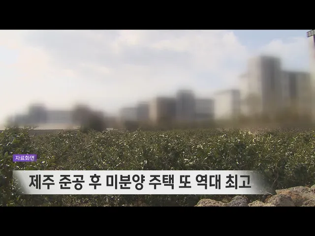 도내 준공 후 미분양 주택 믈량이 또 역대 최고를 기록했습니다.국토교통부 주택통계에 따르면 지난달 말 기준 제주의 준공 후 미분양 주택은 2천102가구로 전달 2천30가구보다 3.5% 늘어나 역대 최고를 기록했습니다.한편 도내 미분양 주택은 2천606가구로 전달보다 1.7% 줄었고 주택 매매량도 541가구로 전달 749가구보다...