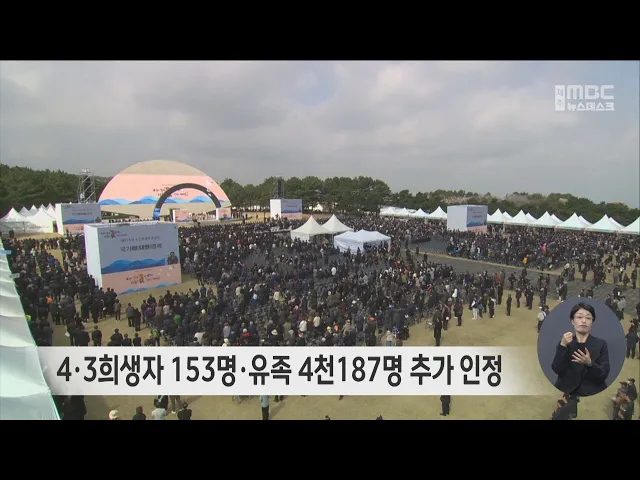 제주4.3 희생자와 유족으로 4천340명이 추가 결정됐습니다. 국무총리가 위원장인 제주4.3사건 진상규명과 명예회복 위원회는 36차 회의를 열고 4.3희생자로 사망자 77명과 행방불명인 41명, 수형인 34명 등 153명을 추가로 결정했습니다. 또 4.3유족으로 4천187명이 인정됐습니다. 특히 생존 후유장애인인 김옥선 씨가 지난...