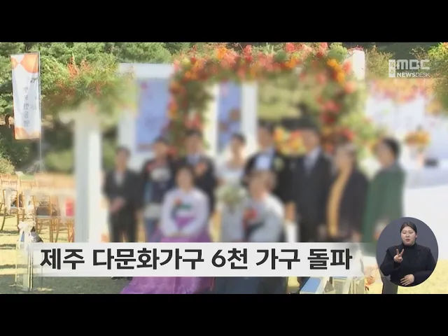 제주도내 다문화가구 수가 처음으로 6천 가구를 넘었습니다. 호남지방통계청이 발표한 다문화 변화상 자료에 따르면 2023년 기준 도내 다문화가구는 6천164가구를 기록했고 전체 가구 대비 다문화가구의 비율도 2.2%로 인천에 이어 전국에서 두 번째로 높았습니다. 또 다문화 결혼은 2023년 362건으로 전년보다 22% 증가했...