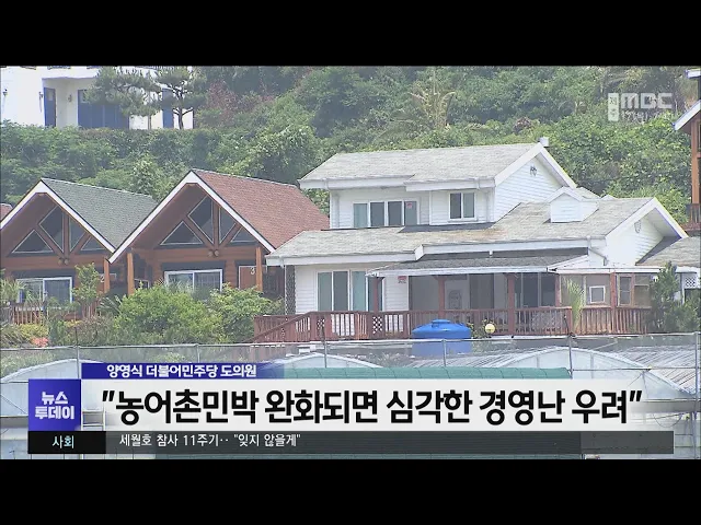 법인이나 단체도 농어촌 빈집을 활용해 민박 사업을 할 수 있도록 허용하는 법률 개정안에 대해 제주도의회에서 우려의 목소리가 나왔습니다. 도의회 농수축경제위원회에서 양영식 도의원은 농림부가 추진하는 도농 교류 촉진법 개정안이 통과되면 도내 민박업계가 심각한 경영난을 맞게 된다며 제주도의 적극적인 대응을 ...