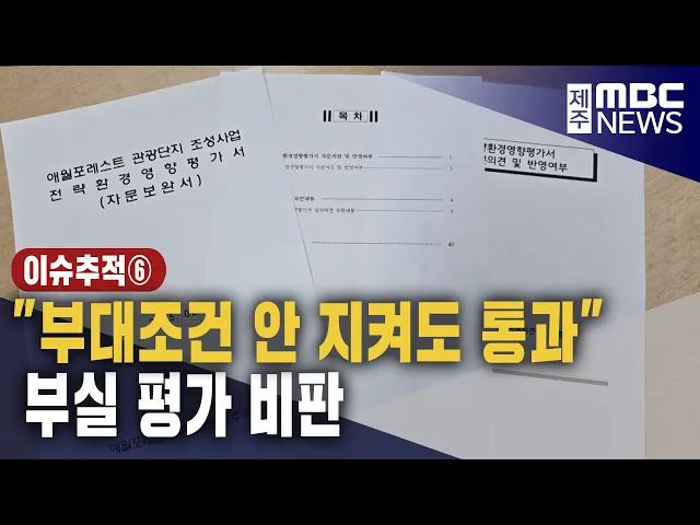 ◀ 앵 커 ▶ 전략환경영향평가의 문제를 추적하는 기획뉴스 여섯 번째 순서입니다. 객실 천 개가 넘는 호텔과 콘도를 짓는 애월포레스트 관광단지 개발사업에 대한 전략환경영향평가가 지난달 '조건부 동의'로 통과됐는데요. 그런데 사업자가 이 부대조건들을 제대로 이행하지 않았는데도 통과됐다는 비판이 나오고 있습니다....