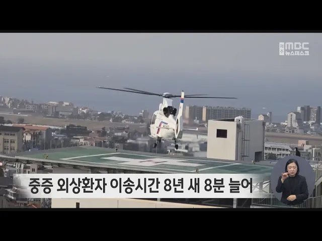 제주지역 119구급대가 중증 외상환자를 이송하는데 걸리는 시간이 지난 8년간 8분 늘어난 것으로 조사됐습니다. 질병관리청의 분석 결과 2023년 기준 도내 중증 외상환자가 119구급대를 이용해 병원에 도착하는데 걸린 시간은 35분으로 조사 첫 해인 2016년보다 8분 증가했습니다. 이는 전국 최단 시간을 기록한 대전, 인천...