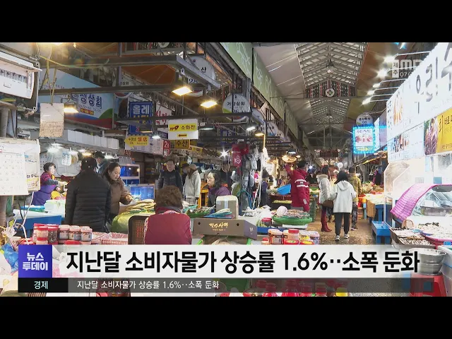 지난달 소비자물가 상승률 1.6%‥소폭 둔화