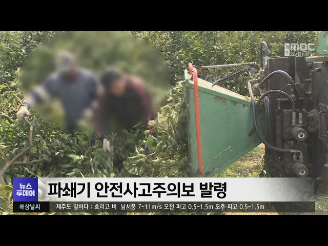 농번기를 맞아 파쇄기 안전사고 주의보가 발령됐습니다. 소방안전본부는 최근 5년 동안 도내에서 파쇄기 안전사고 84건이 발생해 2명이 숨지고 82명이 다쳤는데 절반이 넘는 56%가 3월과 4월에 집중됐다며 각별한 주의를 당부했습니다. 특히 안전사고의 대부분이 파쇄기에 끼면서 발생한 것으로 나타났는데 기계 특성상 중...