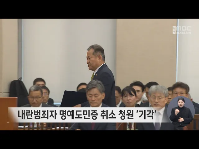 내란사태 관여 의혹을 받는 한덕수 총리와 이상민 전 행정안전부 장관에 대한 명예도민증 취소 청원이 기각됐습니다. 제주도의회 행정자치위원회는 한 총리와 이 전 장관, 국민의힘 국회의원 등 12명에 대한 '내란범죄자 명예도민증 취소 청원'을 심사하고 재판이 진행중인 점 등을 고려해 기각 결정을 내렸습니다. 그러나 ...