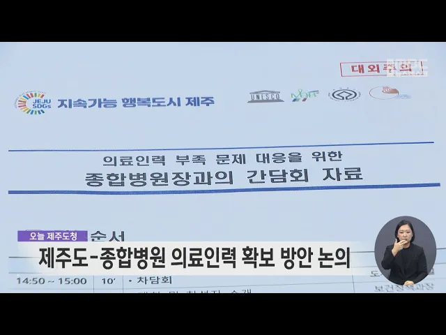 제주도는 도내 종합병원장들과 간담회를 열고 부족한 필수 의료인력 확보 방안을 논의했습니다. 현재 도내 종합병원에서 근무하는 전문의는 419명으로, 필요한 인력보다 72명 부족한 것으로 집계됐는데 재작년 부족 인력 49명보다 47% 증가했습니다. 병원장들은 현장의 실정을 고려한 탄력적인 지원 체계가 필요하다고 밝혔...