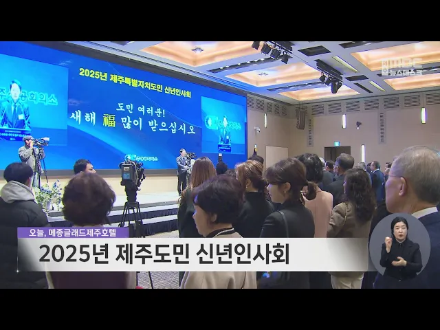 2025년 제주도민 신년인사회가 메종글래드 제주 호텔에서 열렸습니다. 제주상공회의소가 마련한 행사에는 각급 기관, 단체장과 도내 상공인, 사회단체 관계자 등 600여 명이 참석해 제주항공 여객기 참사 희생자에 대한 묵념을 하는 등 간소하게 진행됐습니다. 오늘 신년인사회에서 오영훈 지사는 현재의 경제 위기를 함께 ...