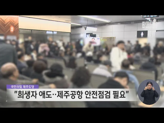 국민의힘 제주도당은 성명을 내고 무안공항에서 일어난 제주항공 여객기 사고 희생자들을 애도하며 사고 수습과 유가족 지원, 원인 규명에 정부의 행정력을 집중해야 한다고 밝혔습니다. 특히 제주도민에게 항공안전은 생명줄이라며 이번 사고를 계기로 정부와 제주도는 제주공항 시설 안전과 항공기 이착륙 시스템을 점검...