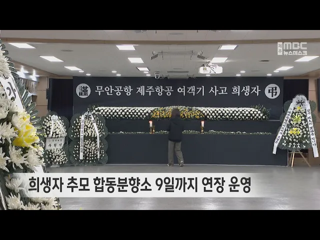 제주항공 여객기 참사 희생자들을 추모하기 위한 합동분향소가 오는 9일까지 연장 운영됩니다. 제주도는 당초 오늘(4일) 밤 10시까지 분향소를 운영할 계획이었으나 아직 희생자 장례 절차가 진행중인데다 지금까지 5천200여 명이 방문하는 등 발길이 이어져 연장을 결정했습니다. 오늘 분향소를 찾은 오영훈 지사는 도민들...