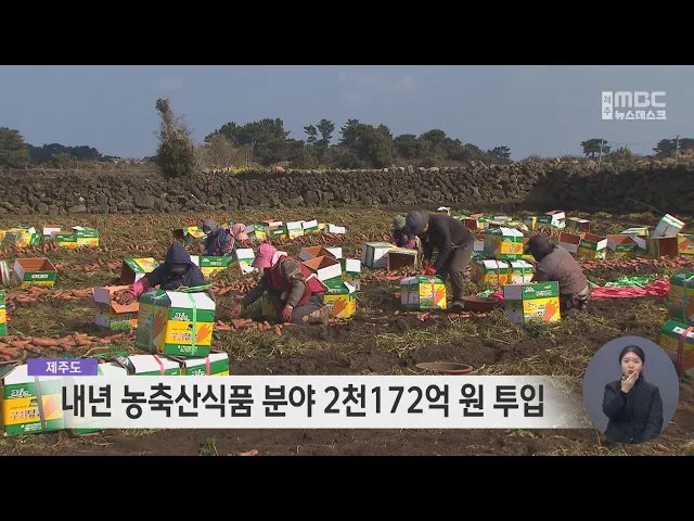 제주도가내년 농업과 축산, 식품 분야에 올해보다 25% 늘어난 2천172억 원의 예산을 투입합니다. 주요 사업을 보면 농업경영 지원과 농가부채 경감 등 농가경제 안정화에 천479억 원을 지원하는데 특히 농촌인력 확보를 위해 공공형 외국인 계절근로사업 확대와 청년농업인 육성 등에 285억 원을 투입합니다. 또 농식품산업...