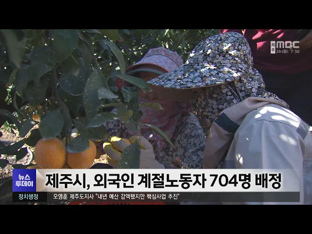 제주시 지역의 부족한 농촌 인력을 지원하기 위해 내년 상반기에도 외국인 계절노동자 704명이 들어옵니다. 제주시는 농촌 인구 감소와 고령화에 따른 농업인력 부족 해소를 위해 내년 상반기 외국인 계절노동자 704명을 법무부로부터 배정받았고 밝혔습니다. 이에 따라 농가에서는 최대 8개 동안 외국인 노동자를 고용...