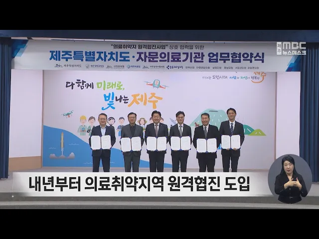 도내 의료기관과 보건진료소가 협력해 내년부터 의료 취약지역에 대한 원격 협진 사업을 벌입니다. 제주도는 제주대병원과 제주의료원, 안덕의원, 남원의원 등 도내 11개 의료기관과 함께 의료취약지 원격협진사업을 위한 업무협약을 체결했습니다. 이에 따라 내년 1월부터 도내 48개 보건진료소에서 화상 시스템을 통해 전...