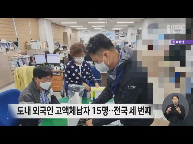 도내 외국인 고액체납자 15명‥전국 세 번째