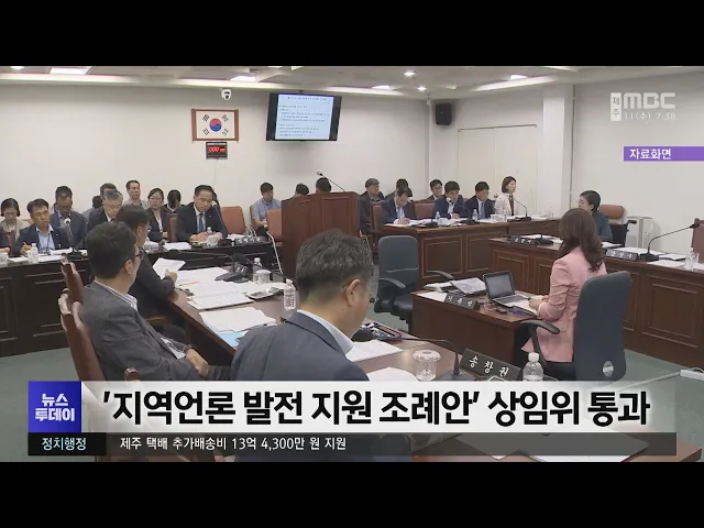 제주지역 언론의 전문성과 공공성을 강화하기 위한 지역언론 발전 지원 조례안이 도의회 상임위를 통과했습니다.제주도의회 행정자치위원회는 현길호 도의원이 대표 발의한 관련 조례안을 수정 가결하고 지역언론의 전문성과 공공성을 높이기 위한 지역언론발전위원회 설치와 지역언론 지원 근거를 마련했습니다.또 제주도...