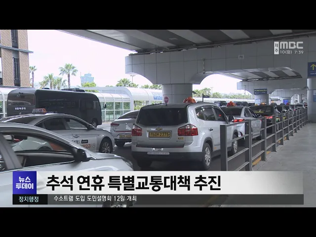 추석 연휴 기간에 특별교통대책이 추진됩니다. 제주도는 추석 연휴 교통수요 증가에 대비해 오는 14일부터 18일까지 닷새 동안 특별교통대책을 마련하고 교통대책상황실을 운영합니다. 특히 기상악화 등의 이유로 제주공항 내에 체류객이 많이 발생할 경우 비상수송지침에 따라 전세버스와 택시를 추가로 투입합니다. 또 ...