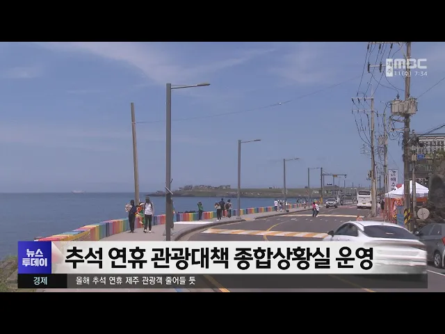 추석 연휴에 관광대책종합상황실이 운영됩니다.제주도는 오는 14일부터 닷새 동안 관련 부서, 유관기관과 함께 관광대책 종합상황실을 운영하고 국내외 관광객 현황 파악과 기상 이변시 공항 체류객 불편 해소에 나섭니다.또 관광객 불편신고를 접수해 신속하게 대응하고 관광시설에 대한 안전 점검과 불법행위에 대한 단속...