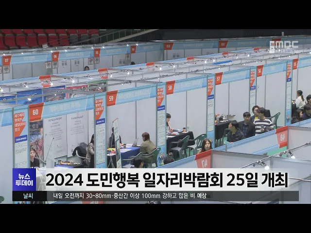 2024 도민행복 일자리박람회가 오는 25일 제주한라체육관에서 열립니다.제주도가 주최하는 이번 행사에는 제주반도체와 제주신화월드, 스타벅스 등 40여 개 기업이 참여해 300명을 채용할 예정입니다. 특히 기업별로 인사담당자가 나와 구직자와 일대일 현장 면접이 이뤄지고 구직자는 이력서와 자기소개서 등 취업 관련 서...