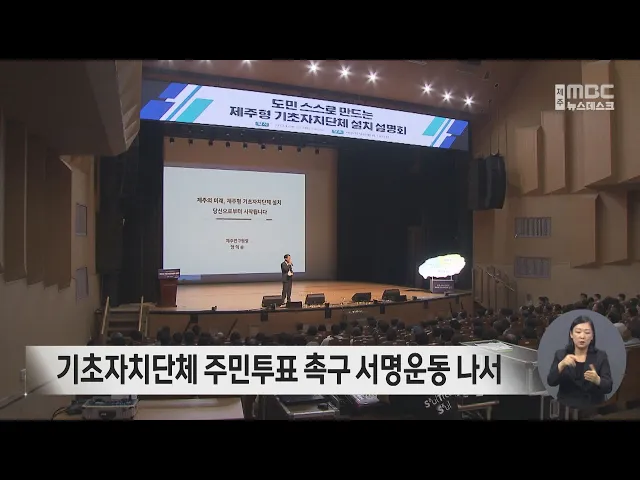 제주형 기초자치단체 도입에 대한 정부의 태도가 미온적인 가운데 제주도가 주민투표 촉구 서명운동에 나섭니다.제주도는 2026년 기초자치단체 출범에 대한 도민 공감대를 확보하기 위해 이번 달을 집중 홍보기간으로 정하고 도민운동본부와 함께 주민투표 촉구 서명운동을 벌입니다.또 시민단체와 법정단체를 중심으로 홍...