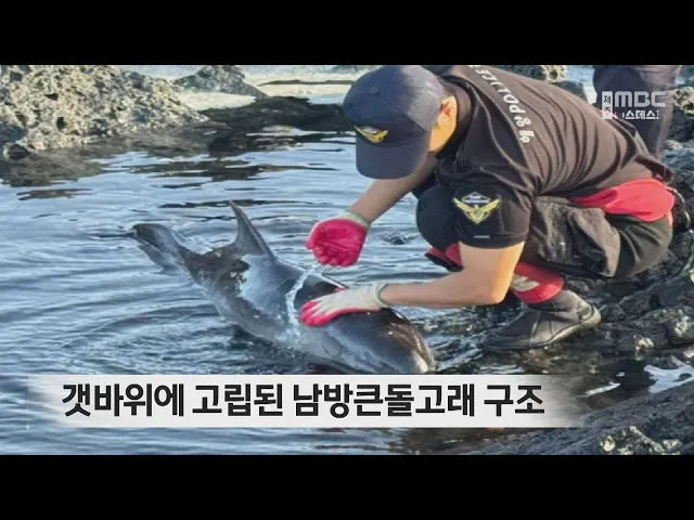 오늘 아침 6시쯤 서귀포시 성산읍 섭지코지 부근 갯바위에서 피를 흘리며 고립된 남방큰돌고래가 발견돼 해경이 긴급 구조한 뒤 해양생물구조기관인 아쿠아플라넷에 인계했습니다. 구조된 돌고래는 길이 1미터 50센티미터에 무게 40에서 50kg 정도로 생후 6개월 미만의 암컷으로 확인됐는데 현재 상태가 좋지 않아 치료를...