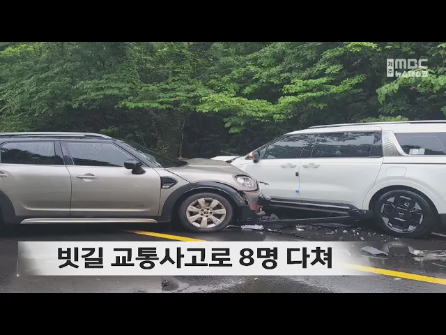 빗길 교통사고입니다.오늘 오후 3시 10분쯤 5.16도로 성판악 인근에서 승합차와 승용차가 부딪히는 사고가 발생했습니다. 이 사고로 승합차에 타고 있던 관광객 6명과 승용차에 타고 있던 제주도민 2명 등 8명이 다쳐 병원으로 옮겨져 치료를 받았습니다.경찰은 운전자를 상대로 정확한 사고 경위를 조사하고 있습니다.