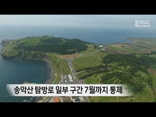 서귀포시 대정읍 송악산 탐방로의 일부 구간이 통제됩니다. 서귀포시는 오는 7월 31일까지 송악산 탐방로 정비공사를 진행하기 위해 데크가 설치된 탐방로의 중간지점 220미터 구간을 통제한다고 밝혔습니다. 이번 정비 사업에는 예산 2억 8천만 원을 투입해 훼손된 바닥 데크를 교체하고 목재 난간을 설치하게 됩니다.