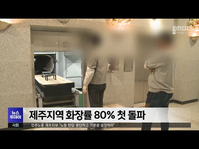 제주지역 화장률이 처음으로 80%를 넘어 화장이 보편적인 장례 방식으로 정착되고 있습니다.제주도에 따르면 2022년 말 기준 도내 화장률은 81.9%로 처음 80%를 돌파했고, 5년 전 60%대에서 꾸준히 상승하고 있습니다.그러나 전국 평균 화장률 91.7%에 비하면 제주가 10%p 가량 낮습니다.제주도는 늘어나는 화장 수요에 대...