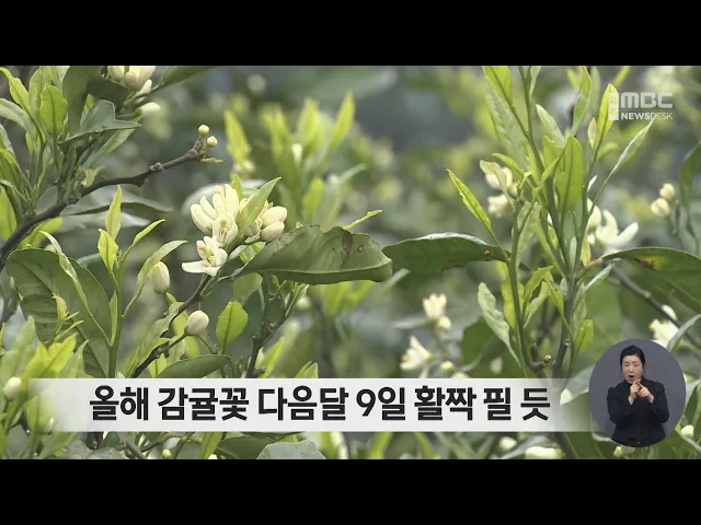 올해 감귤꽃이 다음달 9일 활짝 필 것으로 예측됐습니다.국립원예특작과학원 감귤연구센터는 지난 2월 평균기온이 최근 10년 사이 가장 높았으나 3월 기온이 내려가면서 올해 감귤꽃은 평년과 비슷하고 지난해보다 3일 늦은 다음달 9일 활짝 필 것으로 예상했습니다. 감귤연구센터는 노지감귤의 꽃이 피는 시기에 병행충 피...
