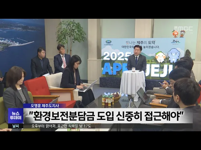 환경보전분담금 도입에 대해 오영훈 지사가 신중한 접근이 필요하다고 밝혔습니다. 오영훈 지사는 기자간담회에서 환경보전분담금 도입에 대해 최근 관광객이 감소세로 돌아선 점과 고품질 관광을 위한 대안 마련 등을 종합적으로 고려해야 한다고 말했습니다. 법적 소송으로 번진 오등봉공원 민간특례사업에 대해서는 주민...