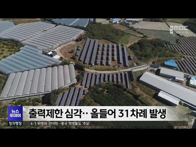 제주도내 재생에너지 출력제한이 계속 늘어나고 있습니다. 전력거래소에 따르면 최근 일주일 사이에 4차례나 출력제한이 발생하는 등 올들어 지금까지 태양광발전 6차례와 풍력 25차례 등 모두 31차례 이뤄졌습니다. 제주지역 출력제한은 지난해 181차례로 재작년 132차례보다 37% 넘게 증가해 점점 심각해지고 있습니다. ...