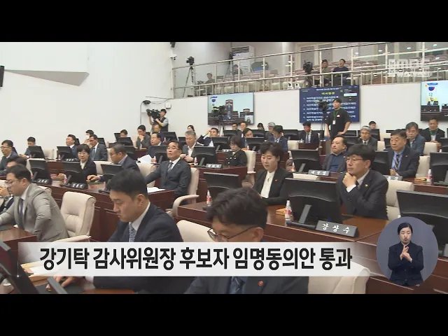 강기탁 제주도 감사위원장 후보자에 대한 임명 동의안이 도의회를 통과했습니다. 제주도의회는 본회의를 열고 강기탁 감사위원장 후보자 임명 동의안에 대한 투표를 실시해 재석 의원 42명 가운데 과반인 35명의 찬성으로 통과시켰습니다. 강기탁 후보자는 제주시 한림읍 출신으로 제주 제일고와 서울대 법대를 졸업하고 민...
