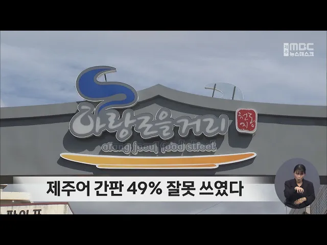 제주어로 쓰인 간판의 절반이 잘못 쓰인 것으로 조사됐습니다.제주학연구센터가 제주시 신성로와 서귀포시 아랑조을거리에서 제주어 간판 191개를 조사한 결과 49%인 94개에서 표기 오류와 어색한 표현 등 문제가 있는 것으로 나타났습니다.제주학연구센터는 제주어 간판이 관광객들에게 호기심을 자극하고 제주다움을 보여...