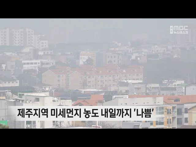 설 연휴 사흘째인 오늘 제주는 맑은 가운데 미세먼지 농도가 나쁨 수준을 보였습니다. 오늘 제주시 고산지역의 미세먼지 농도가 오후 한때 150마이크로그램까지 올라가는 등 제주 전역에서 나쁨 수준을 보이다가 오후들어 점차 보통 수준을 회복했습니다. 설 연휴 마지막 날인 내일도 미세먼지 농도는 나쁨 수준을 보이겠...