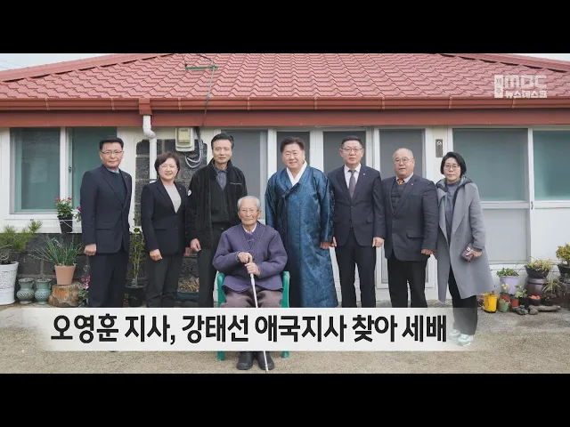 설 명절을 맞아 오영훈 지사가 도내 유일한 생존 독립유공자인 강태선 애국지사를 찾아 세배를 올렸습니다. 1924년 서귀포시 성산읍에서 태어난 강태선 애국지사는 19살 때 일본으로 건너가 독립운동을 하다 붙잡혀 옥고를 치렀고 1990년 건국훈장 애족장을 서훈받았습니다. 강태선 애국지사는 국내 생존 애국지사 7명 가...