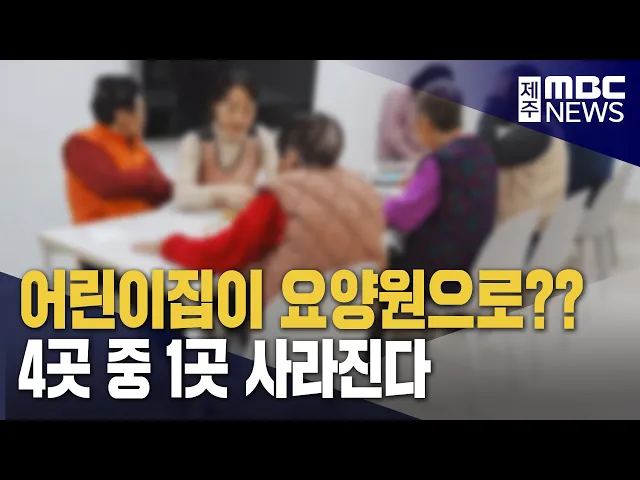 ◀ 앵 커 ▶ 제주지역 출생률이 떨어지고 고령화가 빨라지면서 어린이집을 폐원해 노인복지시설로 전환하는 사례가 잇따르고 있습니다. 앞으로 4년 뒤에는 도내 어린이집과 유치원 4곳 가운데 1곳이 사라질 것이란 연구 결과도 나왔습니다.송원일 기자가 보도합니다.◀ 리포트 ▶ 여든이 넘은 할아버지, 할머니들이 모여 퍼즐...
