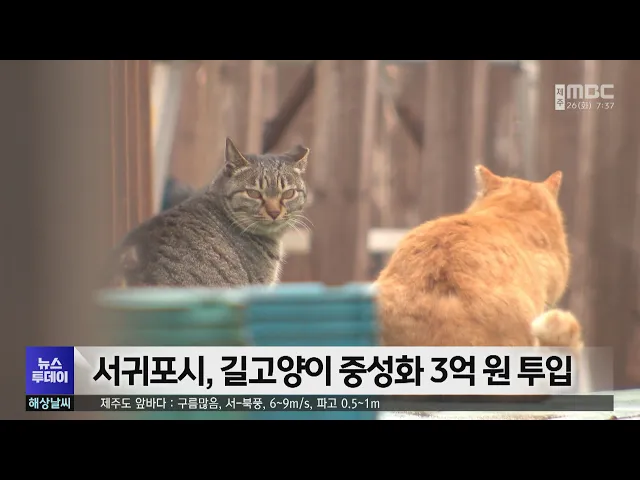 서귀포시는 길고양이의 과잉 번석을 막기 위해 내년 길고양이 중성화 사업에 예산 3억 원을 투입합니다.이는 올해 2억 4천만 원보다 6천만 원 늘어난 것으로 길고양이 천500여 마리 대상으로 중성화 수술을 할 계획입니다.서귀포시는 길고양이의 개체수를 관리하고 과잉 번식을 막기 위해 이 사업을 계속 추진한다고 밝혔습...